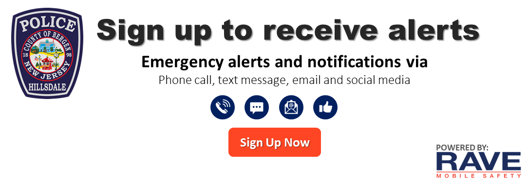 - Sign up for the Borough of Hillsdale e-mail notifications by going to www.HillsdaleNJ.org and scrolling down to ‘What’s Happening Now.’